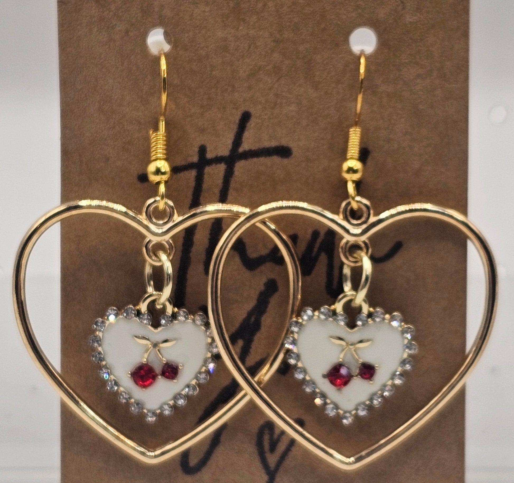 Gold Heart Hoop Earrings With Rhinestone Detail