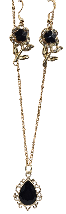Rhinestone Flower Teardrop Earring/Necklace Set